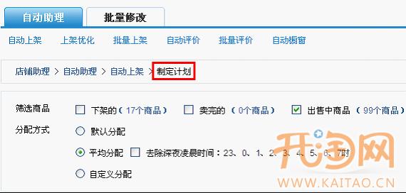 6.或者也可以选择“自定义分配”,按照宝贝占比来设置上架时间。如下图: