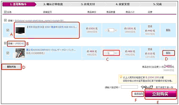F、继续购物:如果您还需要购买更多的宝贝,您可以点击“继续选购”返回到淘日本的其他页面继续挑选商品。