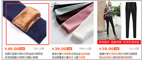 我们举个简单的例子:有一个消费者搜索“加绒打底裤”。那么,我们基本可以明确,这个消费者想要一条打底裤。但是你觉得真正影响消费者购买的决定性因素是什么呢?是“一条时尚漂亮的打底裤”,还是一条“加绒暖和的打底裤”?很显然,是后者。