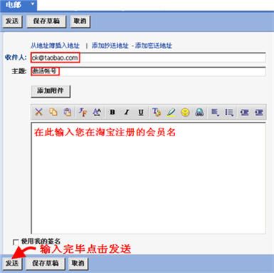 方法二、使用您的注册邮箱发激活帐号邮件给淘宝,激活会员名: 返回顶端