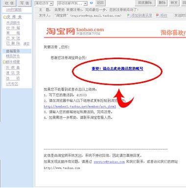 3、打开这封邮件(参考下图),点击邮件中的链接,即可激活您的淘宝会员名。