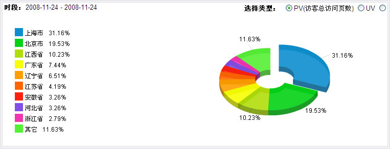 访问买家的区域分布。我是这样来利用这个数据的,比如我统计下来,访问我小店的用户多是上海、北京、江西、广东用户,那么我下一轮网络推广的时候我会刻意的进行区域的选择(比如百度贴吧就分了不同地区的贴吧,这个简直太便宜我啦,哈哈。。。)一些访问量小的区域下次推广的时候我基本上就会减少力度了。