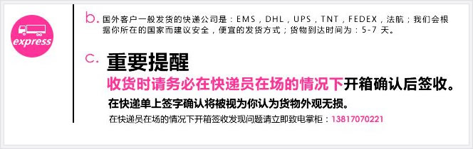 B.我们在商品的模板里面用很醒目的字提醒买家收到货的时候一定要当着快递员的面验货,以最大限度的保证买家的利益。