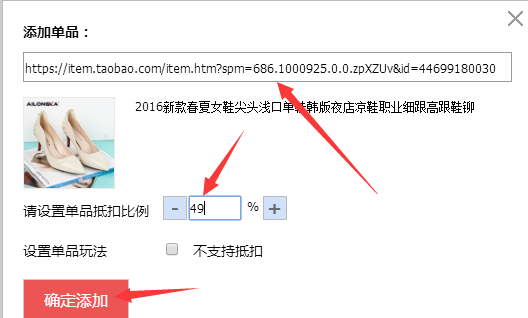 Ps:这是单品的抵扣比例为百分之49,目的是破零,所以把折扣设置的高一些,但是也不要超过50%,不然会影响整个宝贝的权重分。