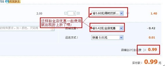 就是做了全店优惠 再给个别商品做限时折扣 天天团购等