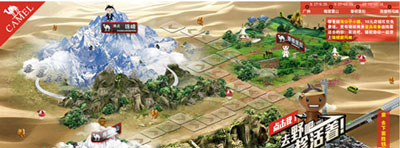 活动类活动往往有两项指标非常重要,就是参与ID,以及活动SNS分享数量。骆驼《去吧!趁活着》的解决方案是:首先,在参与互动之前,必须收藏5家店铺,才能开始踩脚印游戏,当获奖之后,需要分享活动信息才能领奖。这些步骤只需要轻点鼠标就能完成,非常合适淘宝上的用户,而且做到了有效提升店铺收藏量和SNS的分享数量。