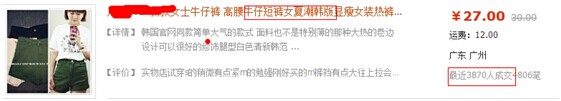 先来看下这款宝贝,标题如下(注意红框标出的部分),30天3870人付款,其中2559人收货。