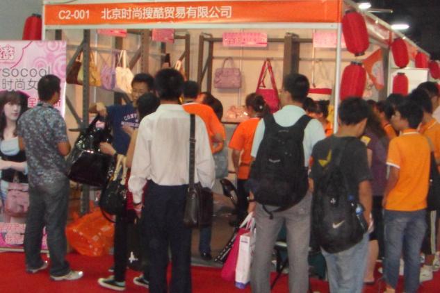展会还没有开始,这是我们刚刚摆好的展位,不同款式,不同风格的搜酷包包整齐的罗列的在架子上。O(∩_∩)O~