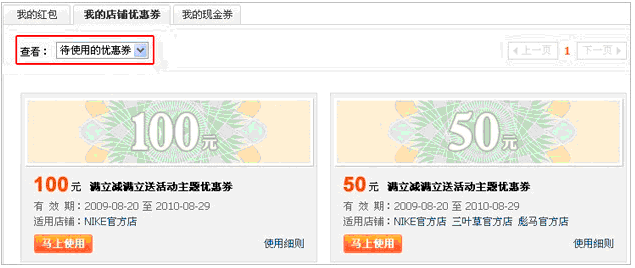 买家可进入“我的拍拍>我是买家>我的优惠卡券”,点击标签“我的店铺优惠券”,即可看到自己所拥有且未使用的店铺优惠券。查看已使用或已过期的优惠券,可点击页面左上方的优惠券类型下拉框进行选择即可。