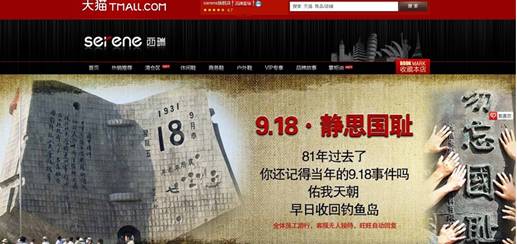 据网店学堂小编了解到,日本意图窃取钓鱼岛并进行“国有化”以后,引起了全体中国人愤怒和声讨,在过去的这个周末,有高达50多个城市,数十万人进行了多次的街头示威游行抗议行动。在全国轰轰烈烈的保钓运动中,淘宝掌柜们也以一些特别的形式,有一家内衣的天猫掌柜在店铺首页发发表“主权受辱,无心卖货”的宣言,来表达对钓鱼岛事件的关注。